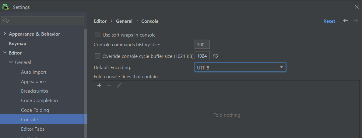 Set "UTF-8" at Setting > Editor > General > Console > Default Encoding